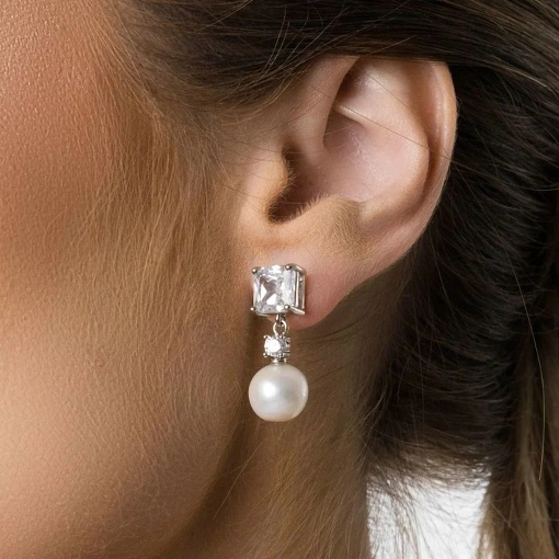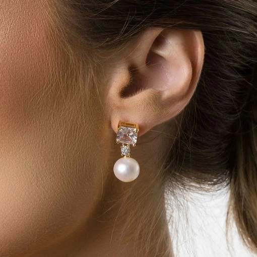 Brinco Zircônia e Perola Barroca Banho de Ouro 18k